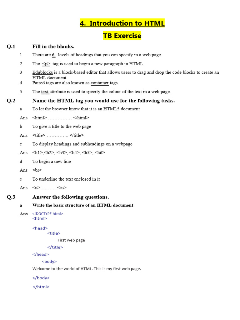 c. Aliya has created a web page in HTML. It displays an article on various parts of the