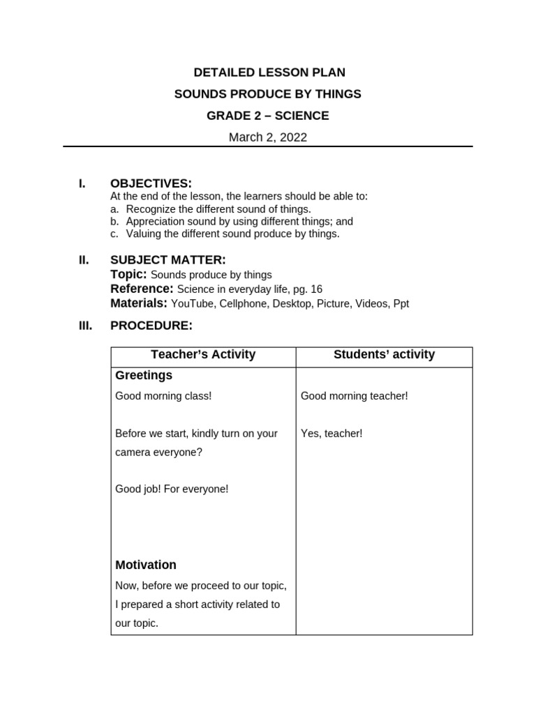 DETAILED LESSON PLAN