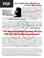 commonly known as John Doe of the family: Smith I don't know when I was born - my parents say I was born on (month day year) John Doe Smith - authorized agent for JOHN DOE SMITH Was there a breach of the peace? You know, the witnesses know, and the evidence (if applicable) shows if there was or not. The basic rules: 1. Do not harm other people 2. Do not damage property 3. Do not use fraud in your contracts Do to others as you want them do unto you. Universal maxims of law Recommended videos TheAntiTerrorist (YouTube channel) (website) Robert Menard - Bursting Bubbles Of Government Deception The Strawman Illusion - The Matrix Revealed Hijacking Humanity (final cut) - Part 3 - Commerce and Law. Works in Australia too. Learn the meanings of words! This is where they screw people up big time! Semantics! The interpretation of words! Person? Driver? Representative? License? Income?- Not all what you think they are! A person is not only a living being but also includes corporations or legal fictions (example) Did you want the side of fries and the side of gravy and instead got fries sogged in gravy? Grab a Black's Law Dictionary 1st and 2nd edition and keep it handy. Torrent - PDF Handling presentments: Honour - Full acceptance - you receive a fine so you pay it. Honour - Conditional acceptance (read email message) Refusal for cause, without dishonour - refuse their offer based on your beliefs, and give them opportunity to prove you are wrong. Dishonour - silence - do nothing and you accept the terms of whatever they plan to do (eg. arrest / imprisonment) Dishonour - argue - "I wasn't speeding..." (An email forward I once received on this topic) ----- Original Message ----From: Jack To: John