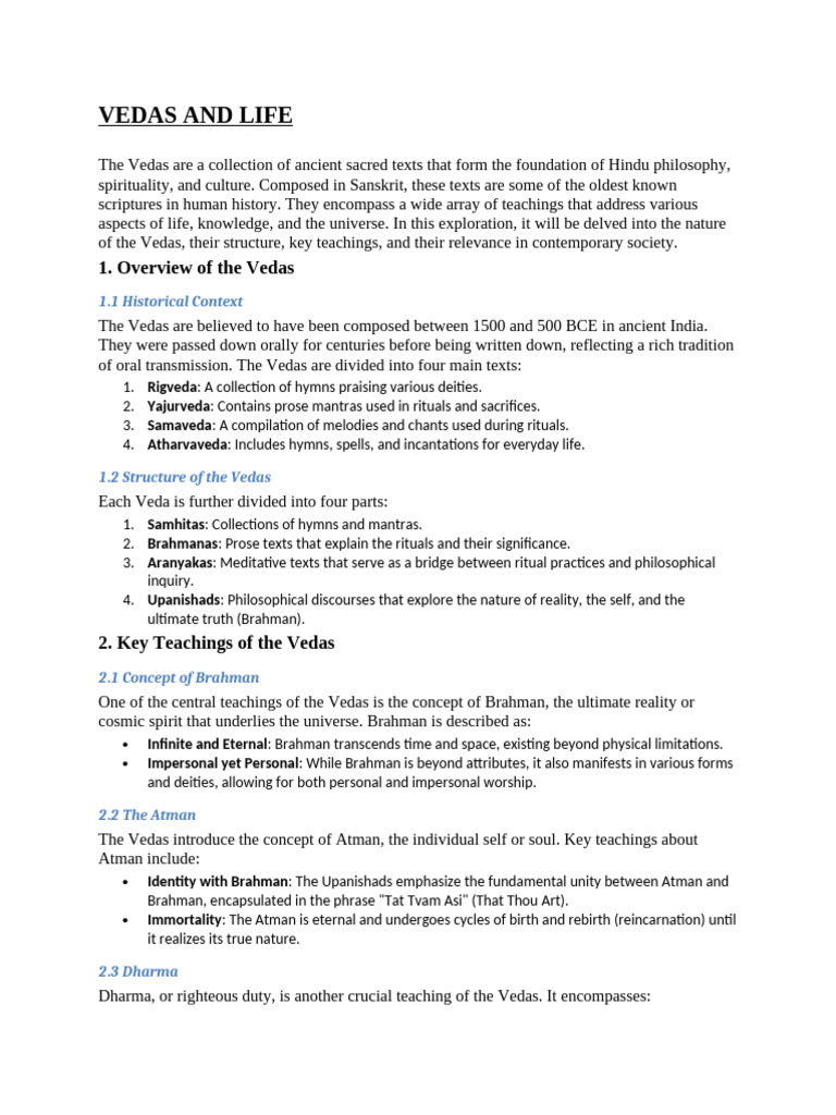 of the Vedas, their structure, key teachings, and their relevance in contemporary society.