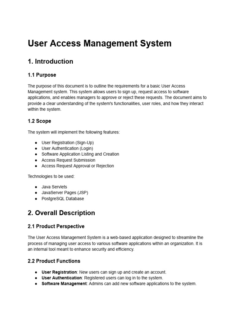 ● Basic Functionality: The system should allow users to sign up, log in, create software