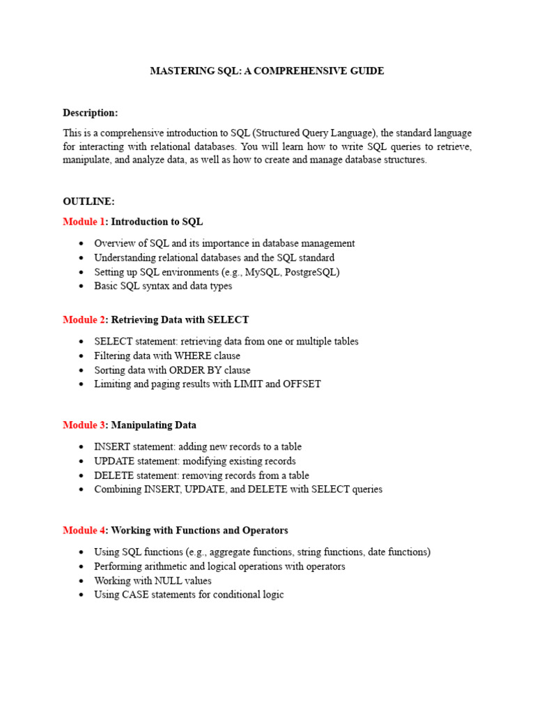 MASTERING SQL: A COMPREHENSIVE GUIDE