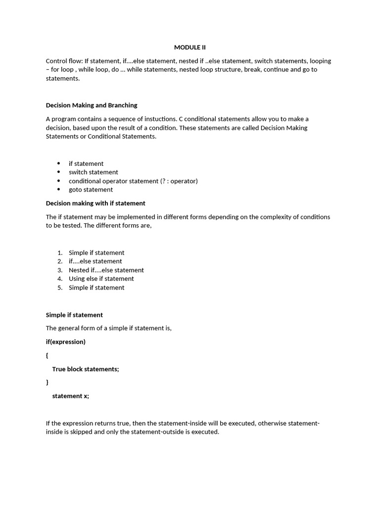 Control flow: If statement, if….else statement, nested if ..else statement, switch statements, looping