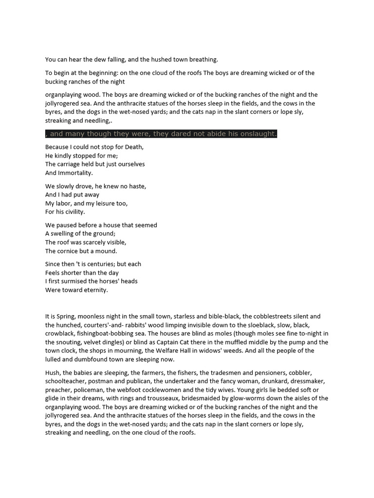 the hunched, courters'-and- rabbits' wood limping invisible down to the sloeblack, slow, black,