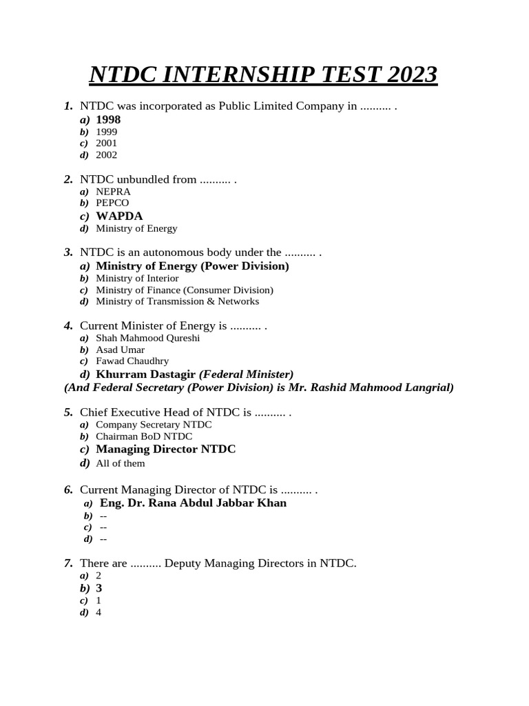 NTDC INTERNSHIP TEST 2023
