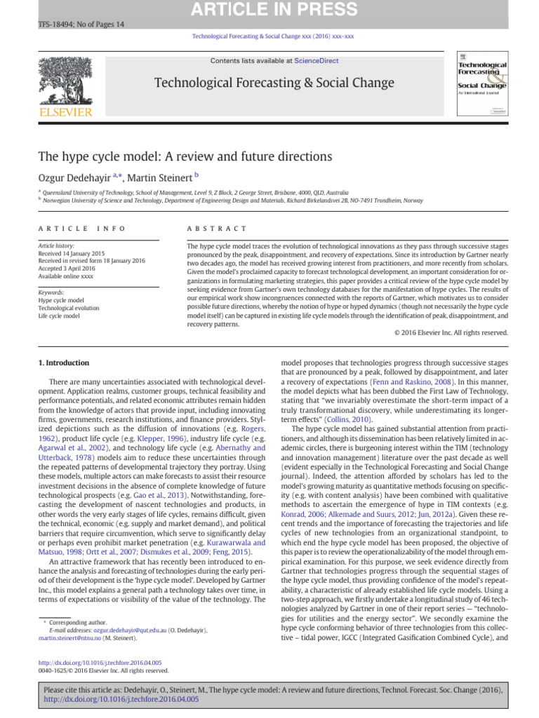 Please cite this article as: Dedehayir, O., Steinert, M., The hype cycle model: A review and future directions, Technol. Forecast. Soc. Change (2016),