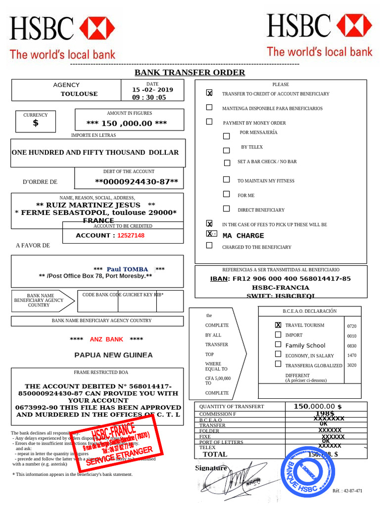 *** Paul TOMBA *** REFERENCIAS A SER TRANSMITIDAS AL BENEFICIARIO