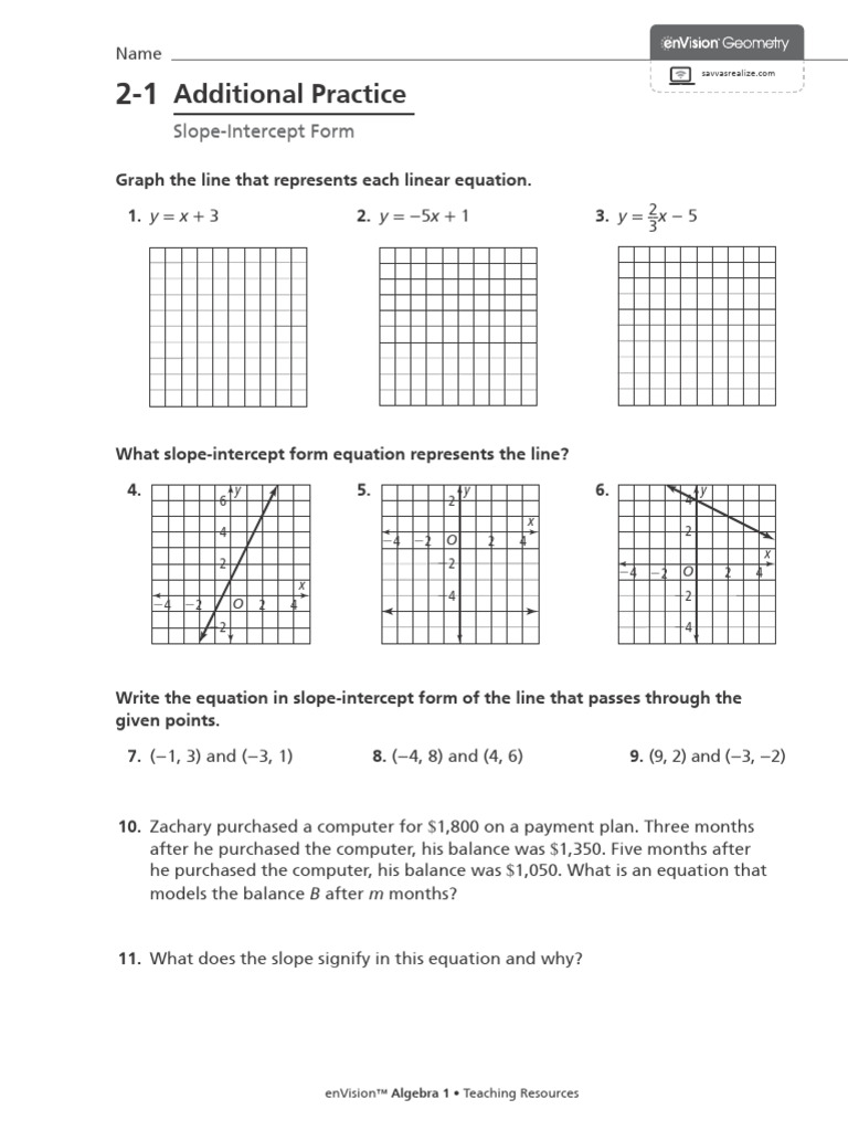 4. (2, 1); m = 3 5. (−3, −5); m = −2 6. (4, −11); m = __34