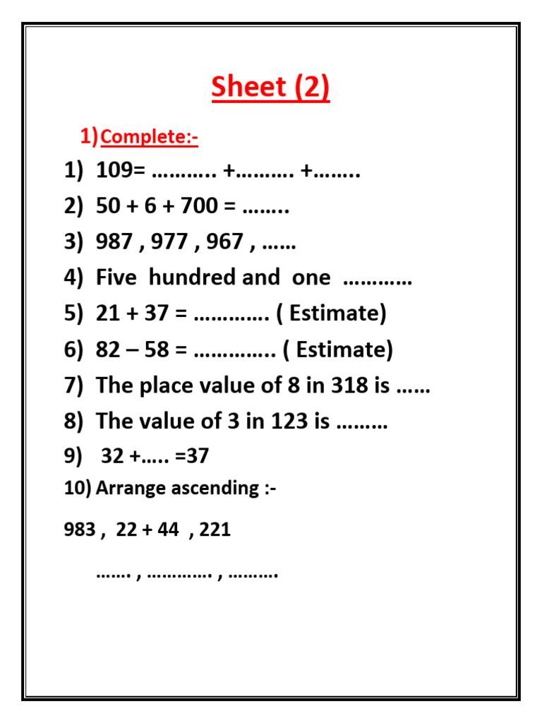 7) The place value of 8 in 318 is …… Ones