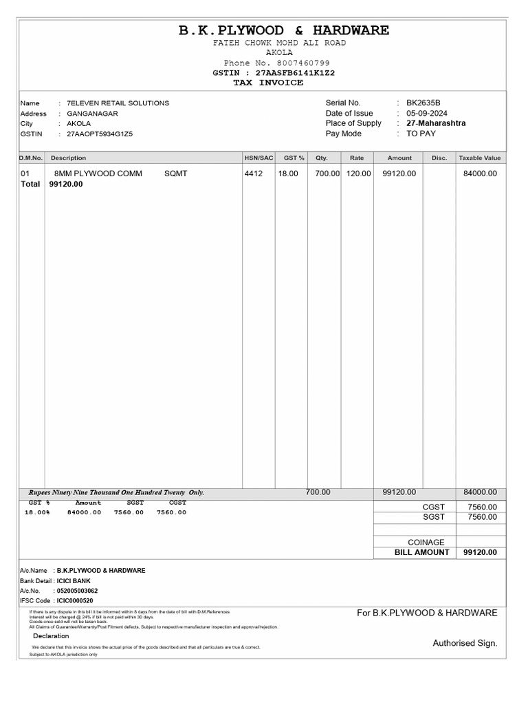 A/c.Name : B.K.PLYWOOD & HARDWARE
