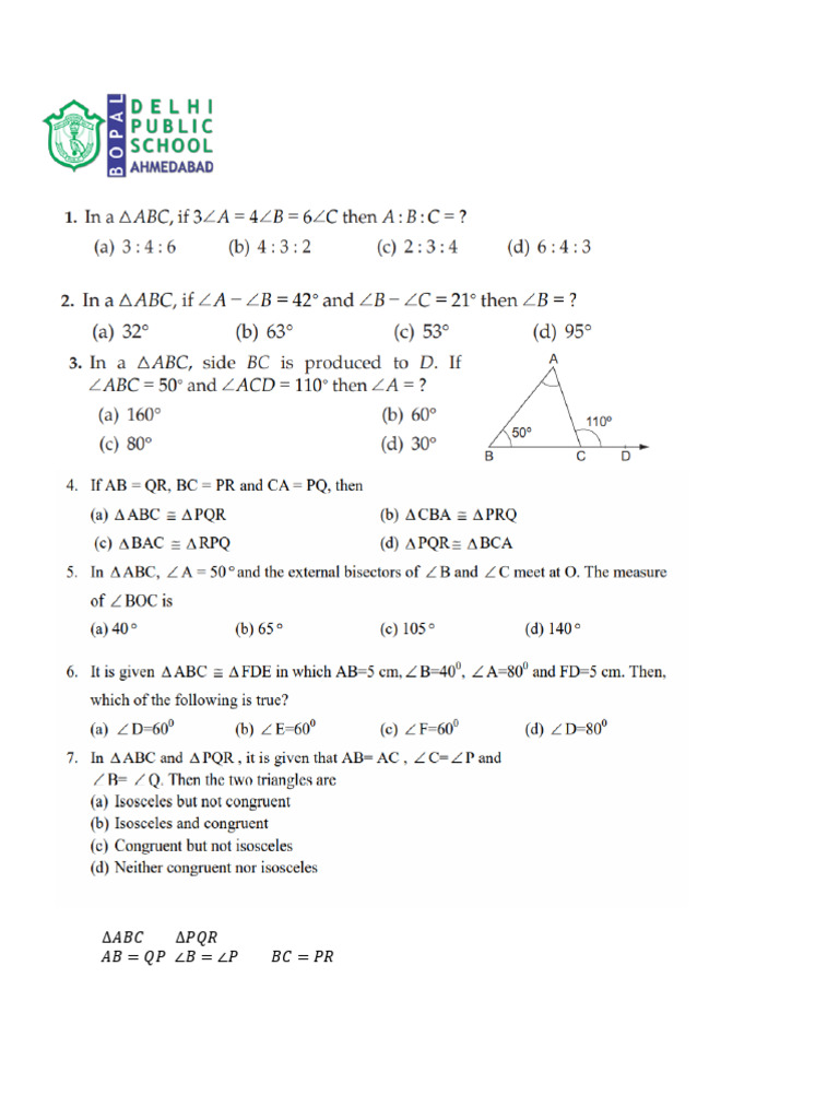 10. Assertion: If any two angles and a non included side of one triangle are equal to the corresponding