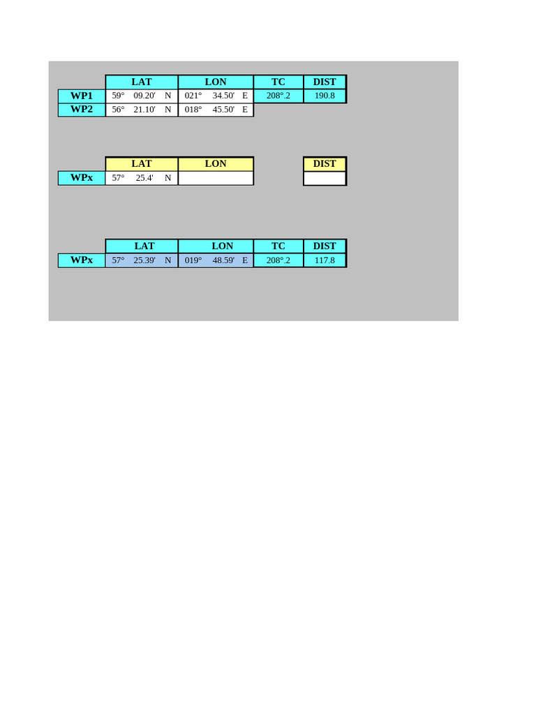 WP1 59° 09.20' N 021° 34.50' E 208°.2 190.8