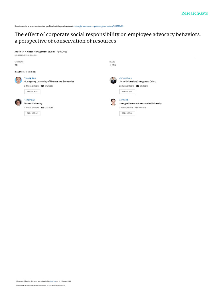 Xie et al., 2019). Others investigate the influence of employees’ perceptions of CSR on