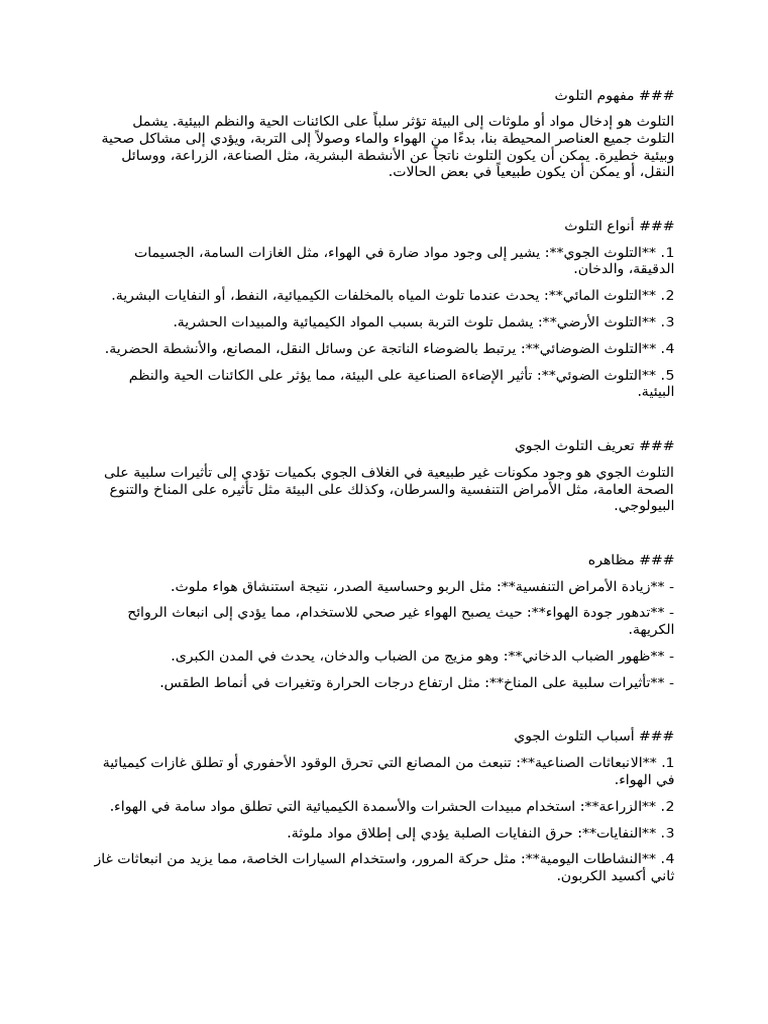 ** . 3توعية المجتمع** :تعليم الناس عن أهمية الحفاظ على الهواء النظيف وتأثير التلوث على الصحة.