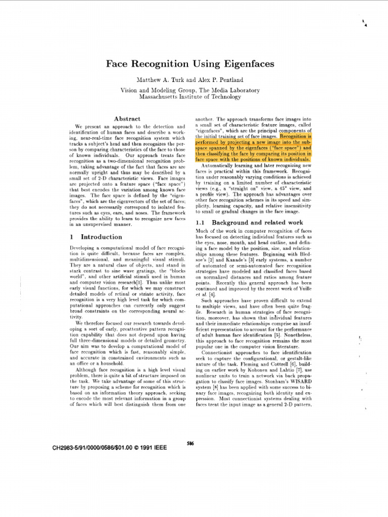 Matthew A. Turk and Alex P. Pentland