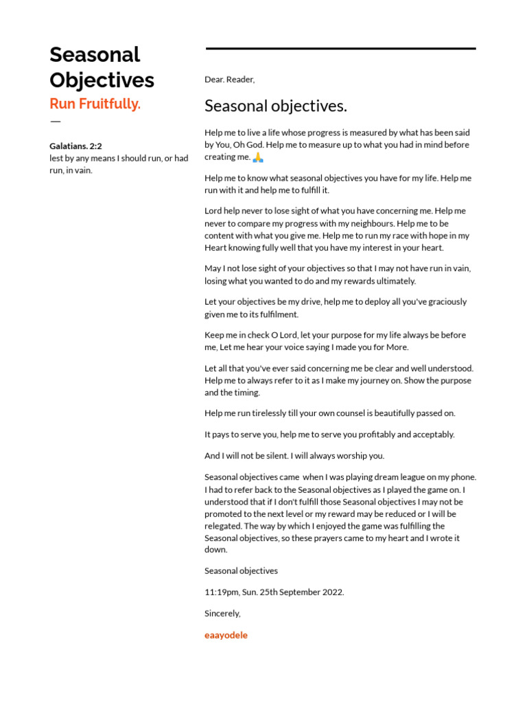 Seasonal objectives, so these prayers came to my heart and I wrote it