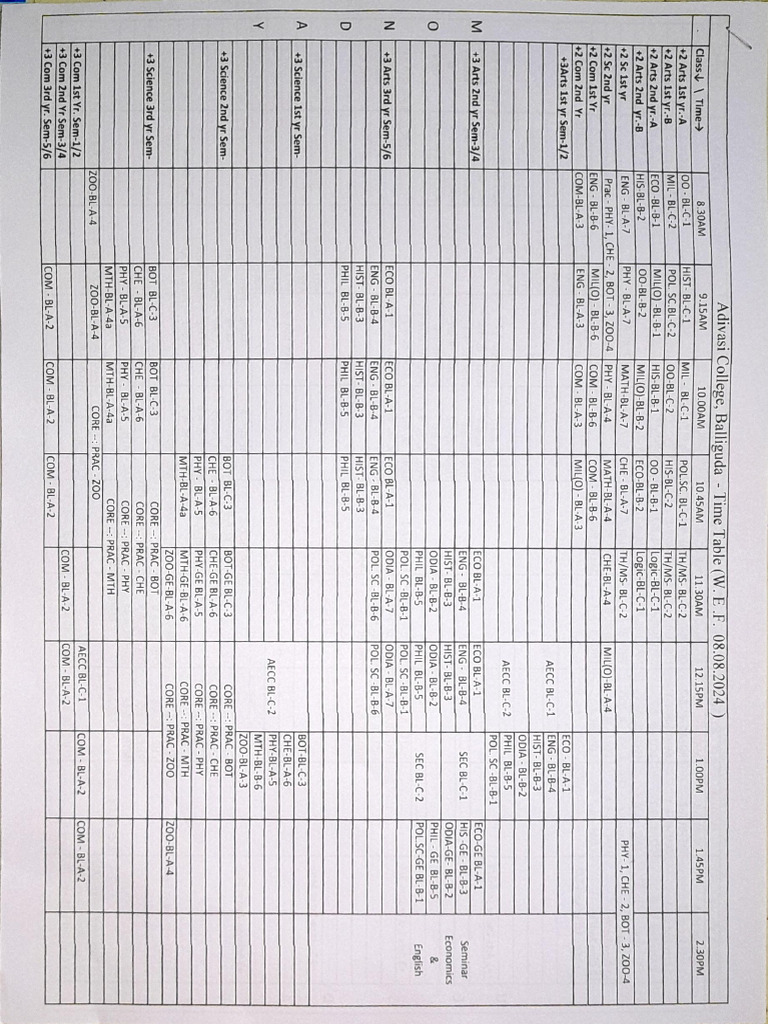 Adivasi College, Balliguda - Time Table (W. EF. 08.08.2024 )
