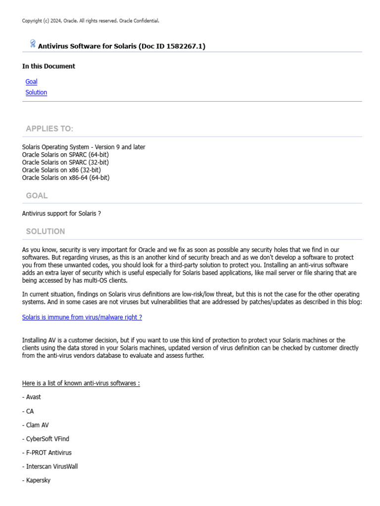 Antivirus Software for Solaris (Doc ID 1582267.1)