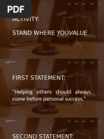 Direction: Identify what categories of values, the following situations are being referred to: