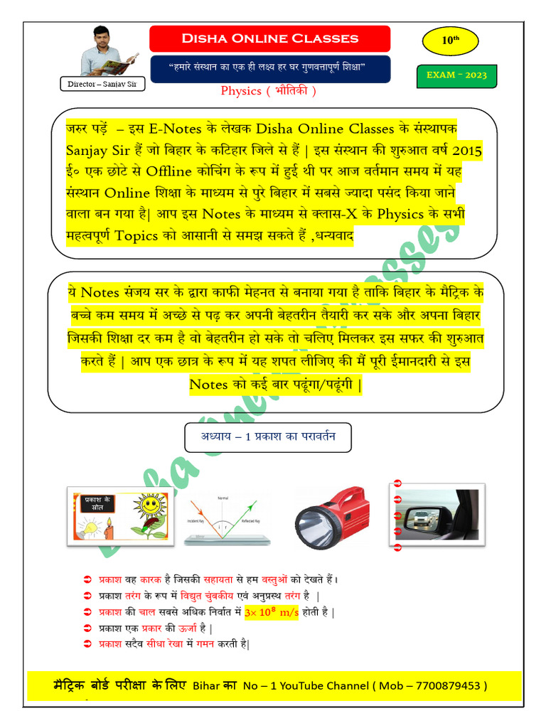 वाला बन गया है| आप इस Notes के माध्यम से क्लास-X के Physics के सभी