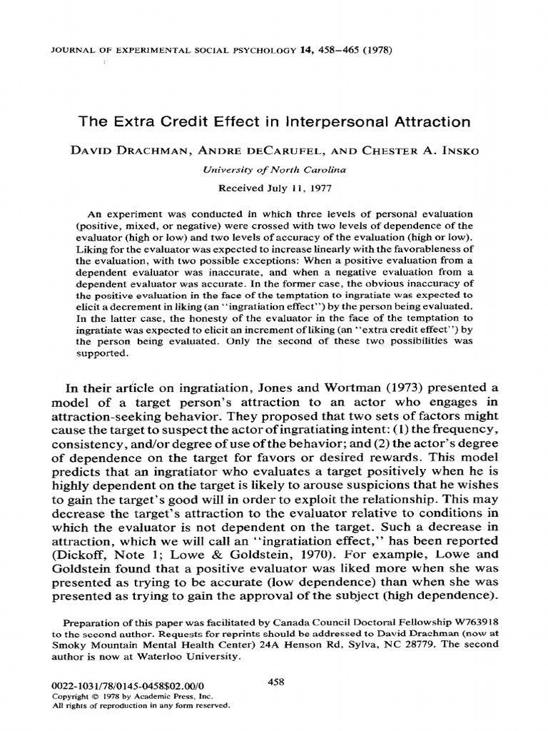 EXTRA CREDIT EFFECT IN INTERPERSONAL ATTRACTION 459