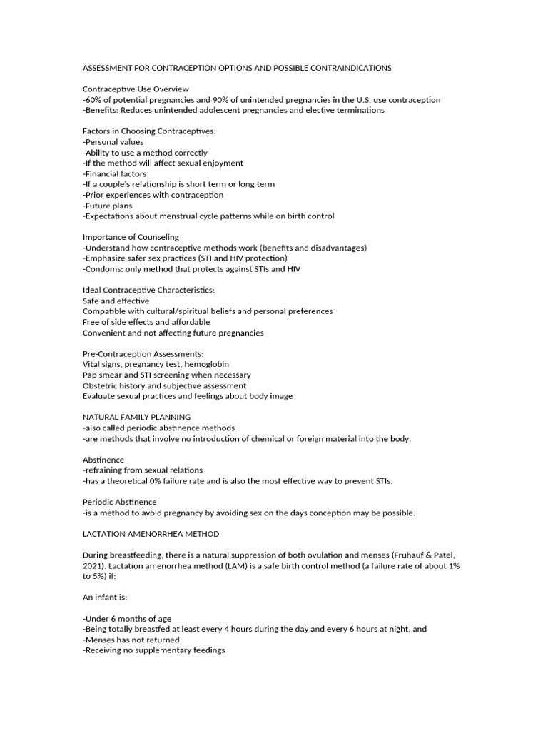 ASSESSMENT FOR CONTRACEPTION OPTIONS AND POSSIBLE CONTRAINDICATIONS