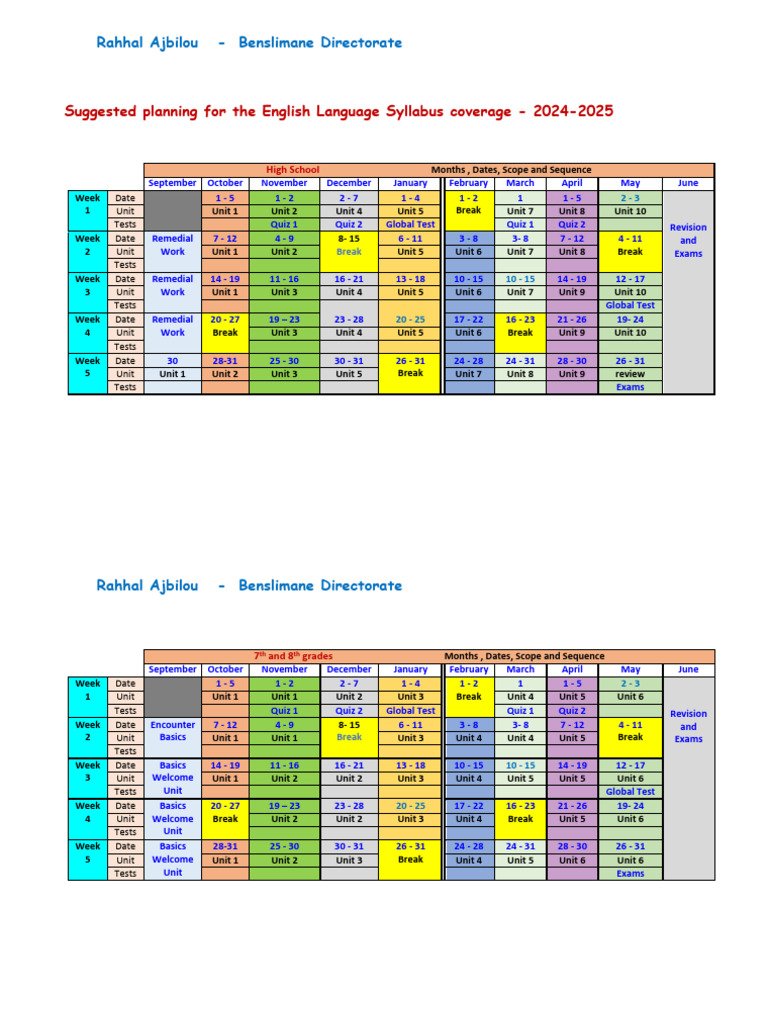 Suggested planning for the English Language Syllabus coverage - 2024-2025