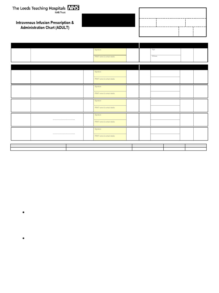 Intravenous Infusion Prescription & ON MAIN DRUG CHART