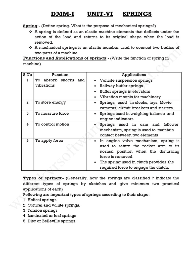 Spring:- (Define spring. What is the purpose of mechanical springs?)