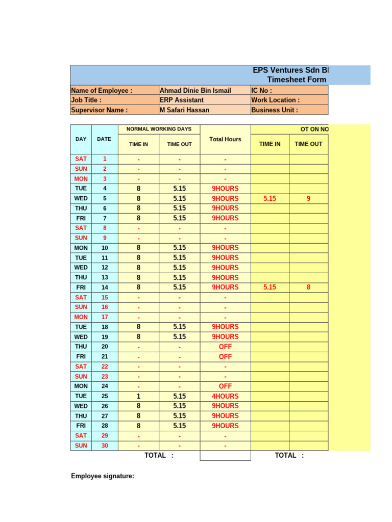 Name of Employee : Ahmad Dinie Bin Ismail IC No :