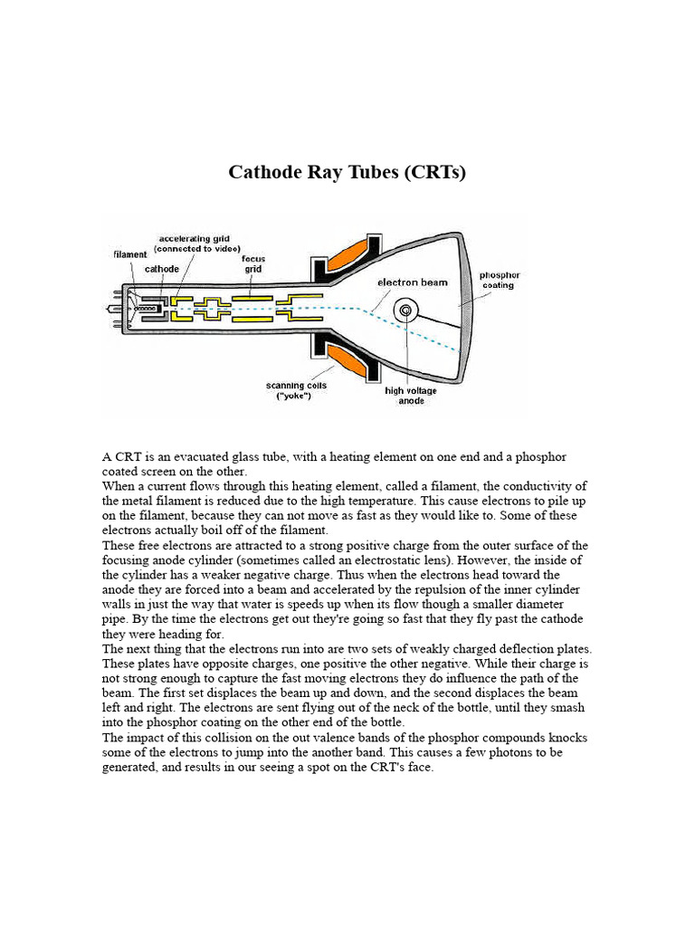 A CRT is an evacuated glass tube, with a heating element on one end and a phosphor