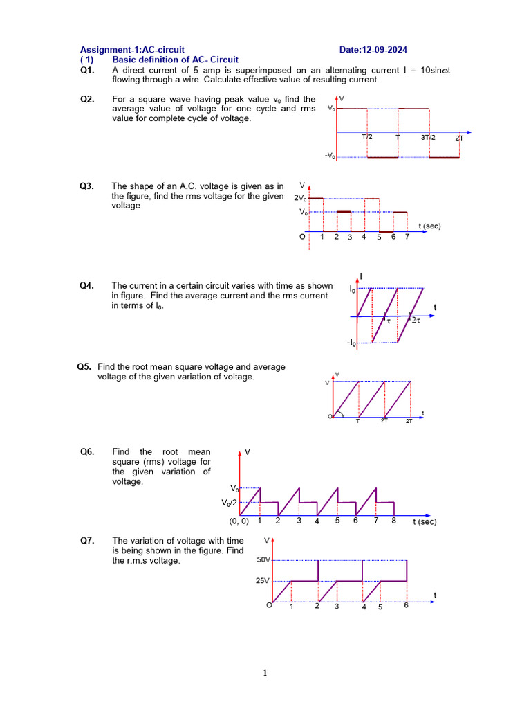 Q1. A direct current of 5 amp is superimposed on an alternating current I = 10sint