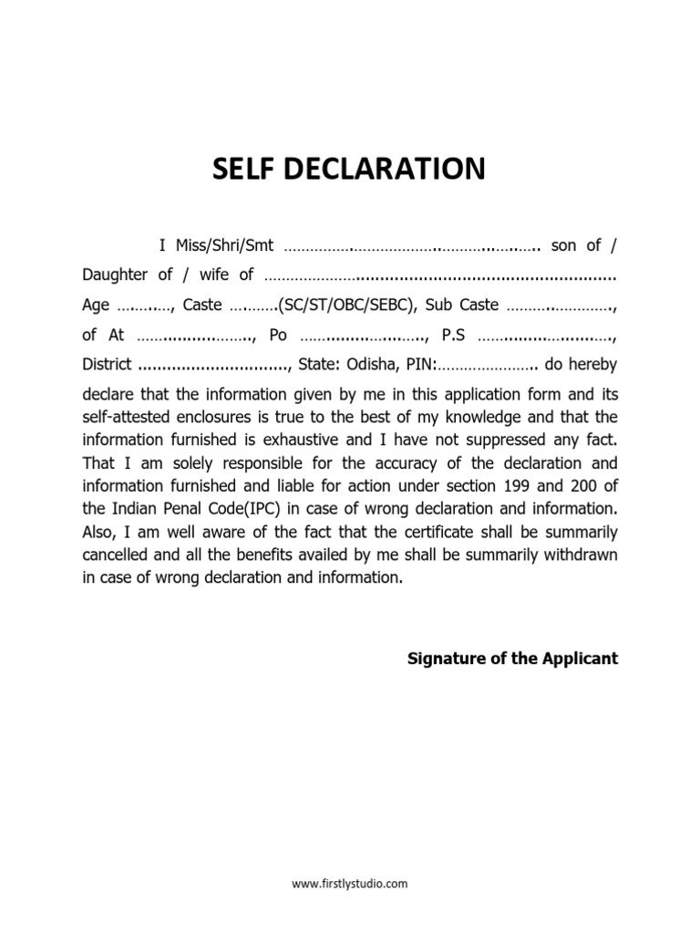 District ..............................., State: Odisha, PIN:………………….. do hereby