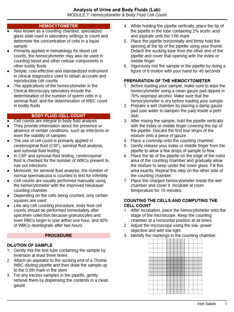 MODULE 7: Hemocytometer & Body Fluid Cell Count