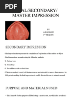 of impression material used for making secondary impressions and the demand of the clinical situation. Like: