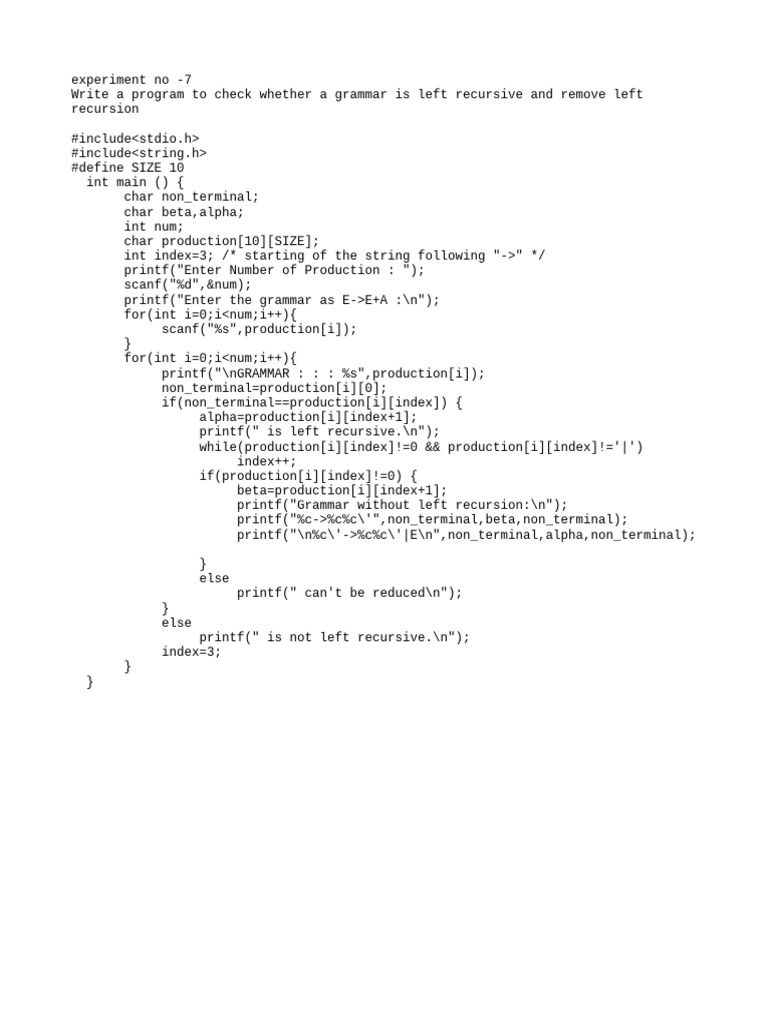 printf("Grammar without left recursion:\n");