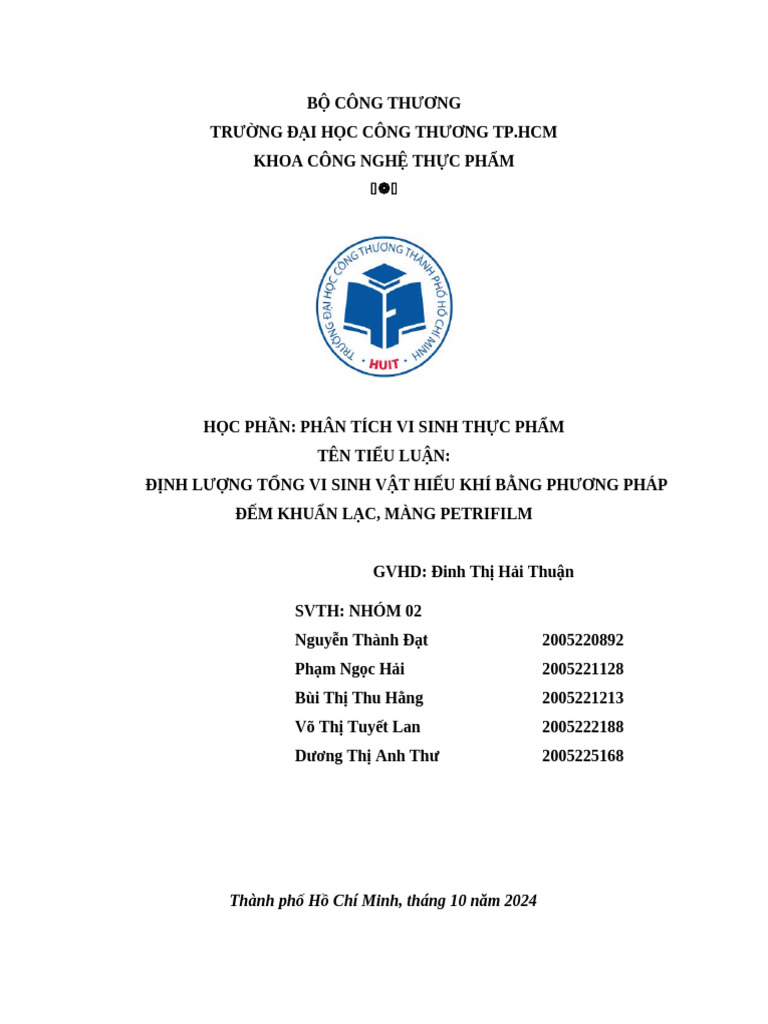 Câu 1: Tổng vi sinh vật hiếu khí thường được định lượng bằng cách nào?