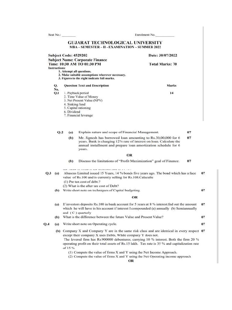 Subject Name: Corporate Finance