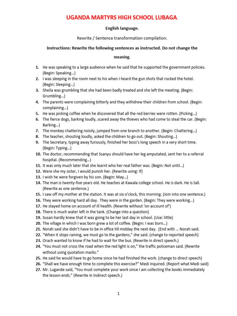 Instructions: Rewrite the following sentences as instructed. Do not change the