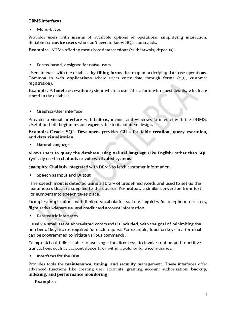 Menu-based interfaces provide users with predefined options, which are straightforward for novices since users do not need to understand SQL commands . Graphics-user interfaces, however, use visual elements like buttons and windows, making them intuitive for both beginners and experts . The main difference lies in the level of interaction ease and complexity management; menu-based interfaces simplify tasks through selection, whereas GUI allows more intricate operations with visual aids, influencing how effectively users can manage or query data without extensive technical knowledge.