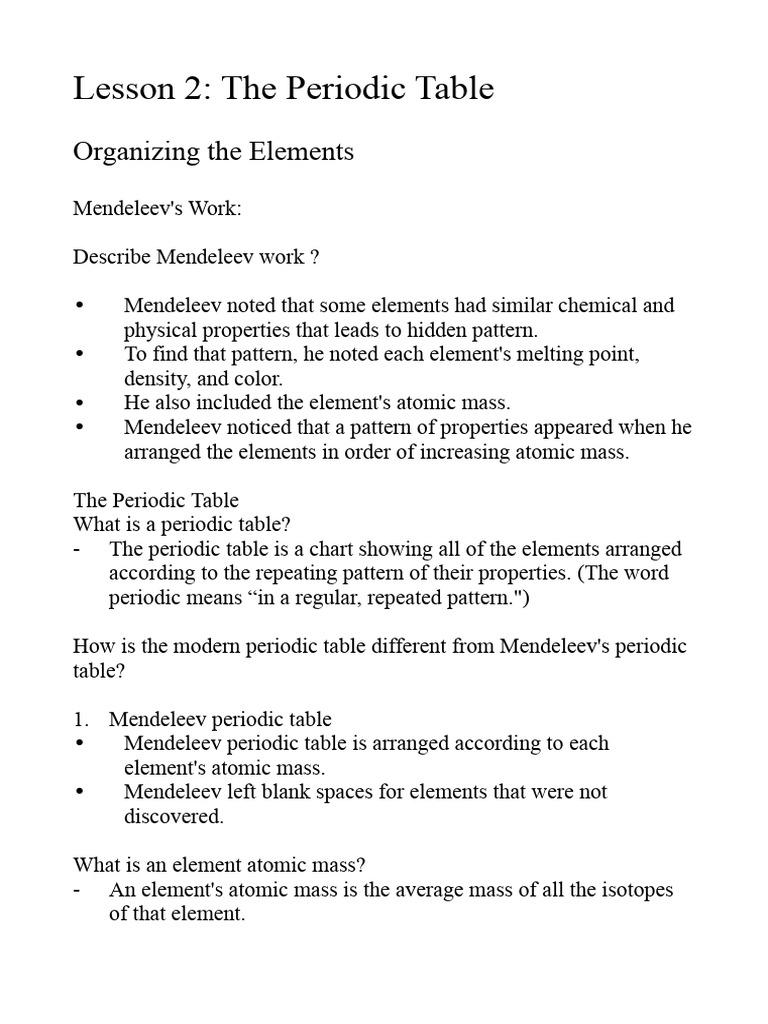 Lesson 2: The Periodic Table
