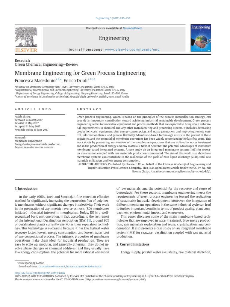 F. Macedonio, E. Drioli / Engineering 3 (2017) 290–298 291
