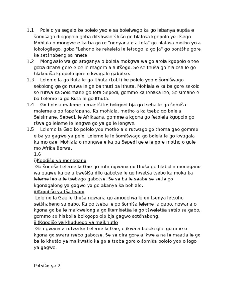 1.3 Leleme la go Ruta le go Ithuta (LoLT) ke polelo yeo e šomišwago