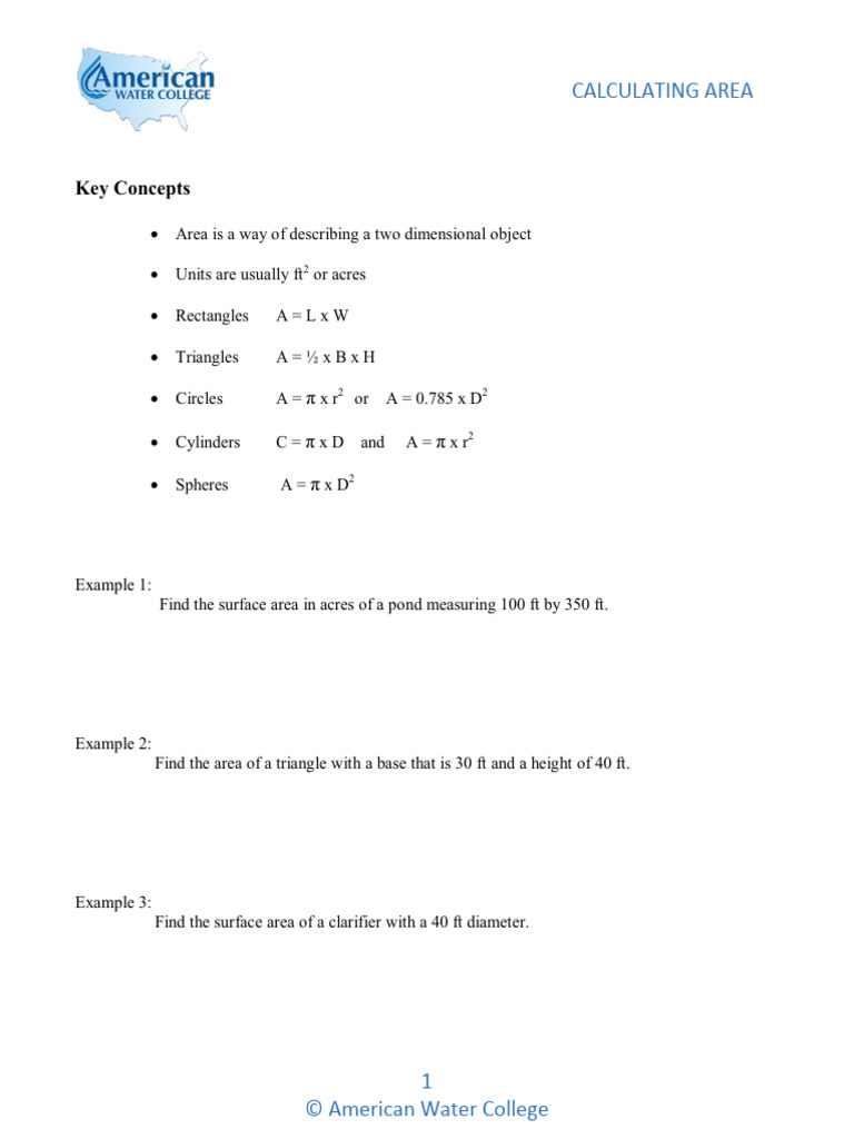 11. The surface area of a round clarifier that measures 50 feet across = _____________sq ft