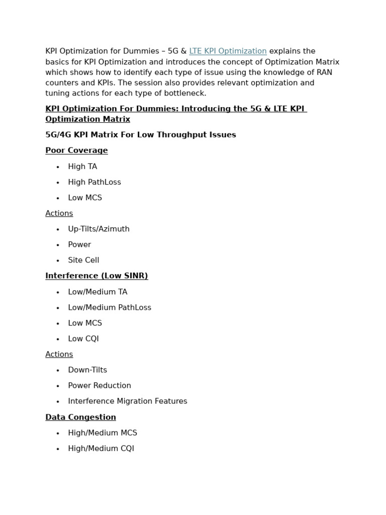 5G/4G KPI Matrix For Low Throughput Issues