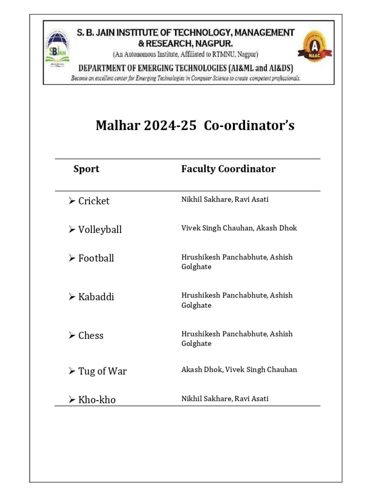 1. Pranay Borikar (9359955426) – 5th Sem AIDS