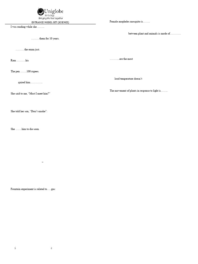 ENTRANCE MODEL SET (SCIENCE) 11. Female anopheles mosquito is……..