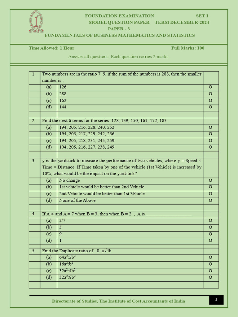FOUNDATION EXAMINATION SET 1