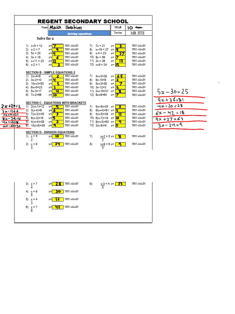 Solving equations Teacher MR JITE