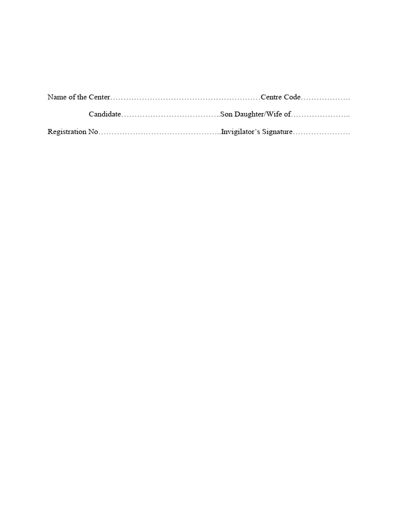 Name of the Center…………………………………………………Centre Code……………….